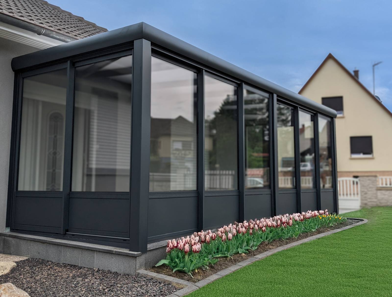 La structure est équipée de menuiseries coulissantes sans rupture thermique, assurant une isolation efficace contre l’air et l’eau. Le vitrage sécurité 44.2 garantit une protection optimale, vous permettant de profiter pleinement de votre jardin d’hiver, quelles que soient les conditions extérieures.